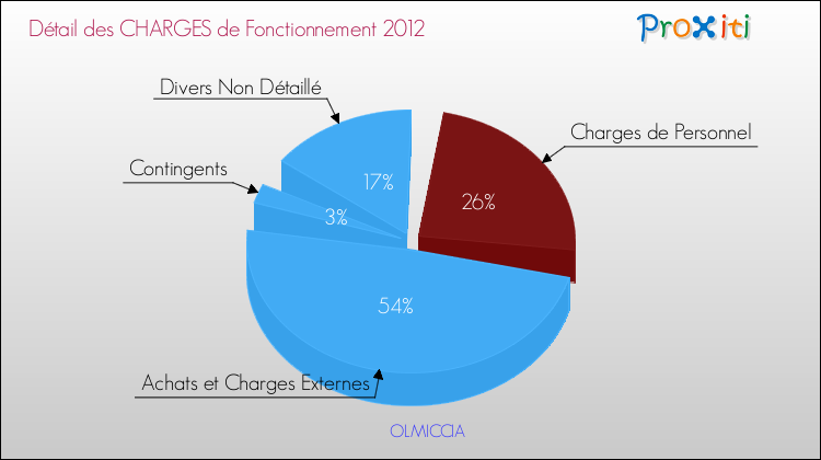 En 2012, les charges de fonctionnement de la commune de Olmiccia étaient de : 72 000 € décomposées comme suit :