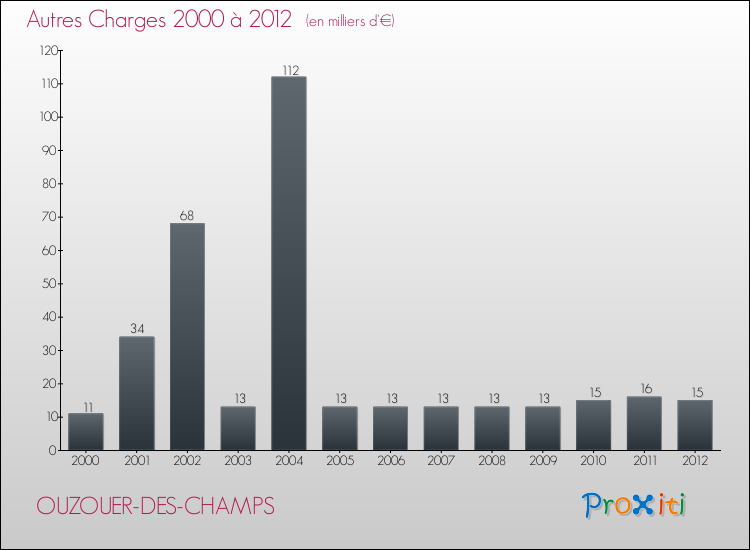 En 2012, les charges de fonctionnement de la commune de Ouzouer-des-Champs étaient de : 133 000 € décomposées comme suit :