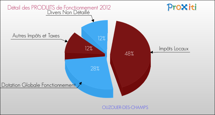 En 2012, le budget de fonctionnement de la commune de Ouzouer-des-Champs se montait à : 172 000 € décomposé comme suit :