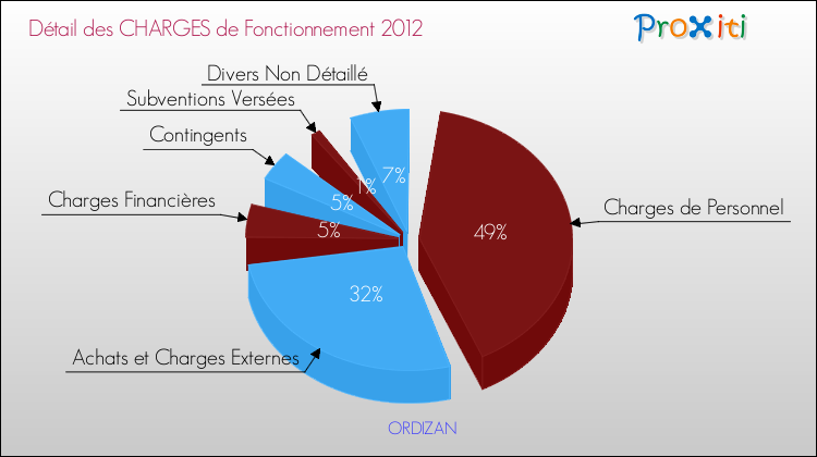 En 2012, les charges de fonctionnement de la commune de Ordizan étaient de : 176 000 € décomposées comme suit :