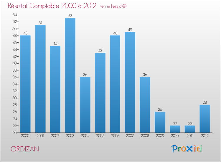 Le résultat comptable de la commune de Ordizan s'établissait ainsi à : + 28 000 € fin 2012.