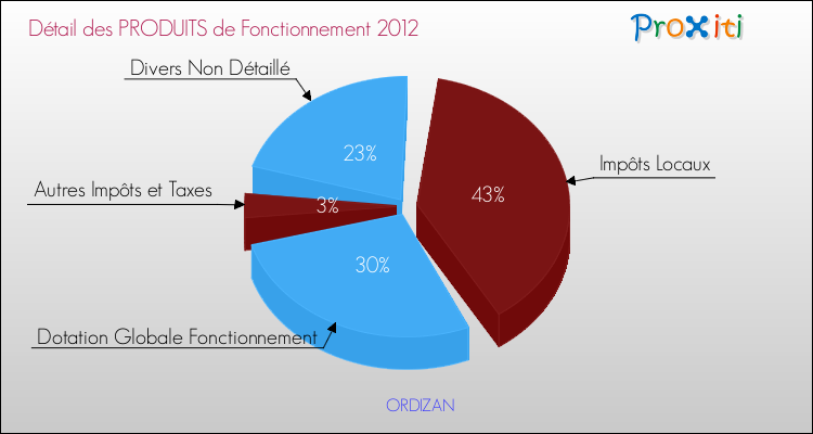 En 2012, le budget de fonctionnement de la commune de Ordizan se montait à : 204 000 € décomposé comme suit :