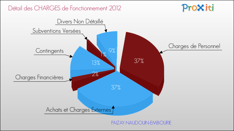 En 2012, les charges de fonctionnement de la commune de Paizay-Naudouin-Embourie étaient de : 339 000 € décomposées comme suit :