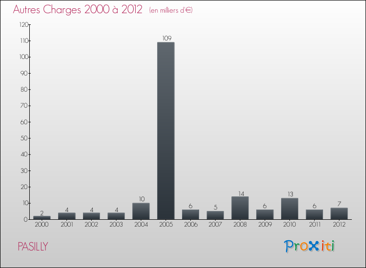 En 2012, les charges de fonctionnement de la commune de Pasilly étaient de : 66 000 € décomposées comme suit :