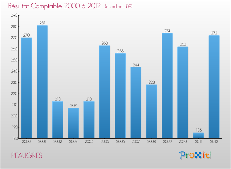 Le résultat comptable de la commune de Peaugres s'établissait ainsi à : + 272 000 € fin 2012.