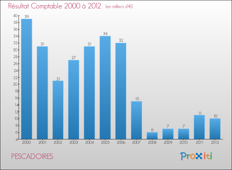 Le résultat comptable de la commune de Pescadoires s'établissait ainsi à : + 10 000 € fin 2012.