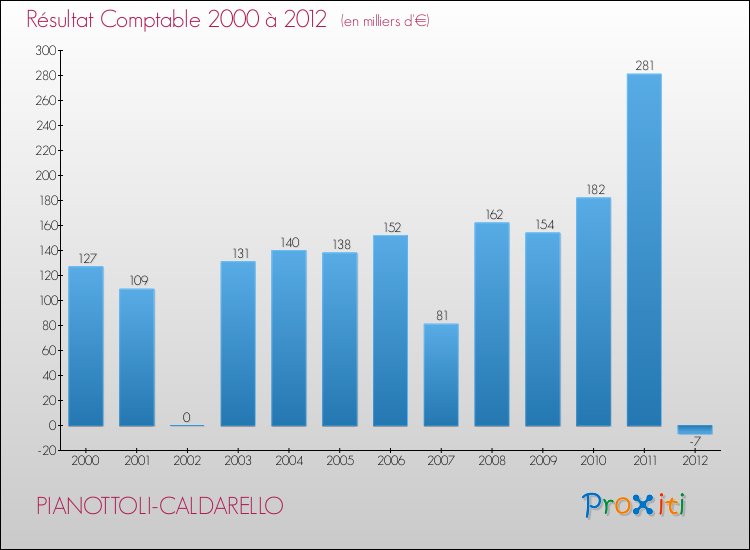 Le résultat comptable de la commune de Pianottoli-Caldarello s'établissait ainsi à : -7 000 € fin 2012 (recettes-dépenses).