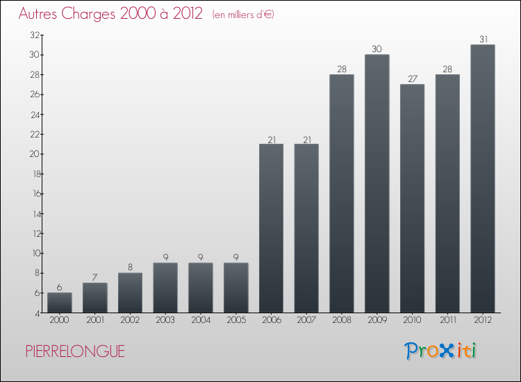 En 2012, les charges de fonctionnement de la commune de Pierrelongue étaient de : 105 000 € décomposées comme suit :