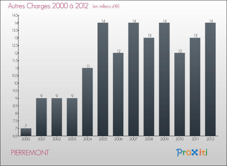 En 2012, les charges de fonctionnement de la commune de Pierremont étaient de : 83 000 € décomposées comme suit :