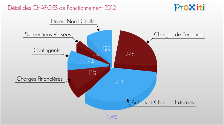 En 2012, les charges de fonctionnement de la commune de Plats étaient de : 397 000 € décomposées comme suit :