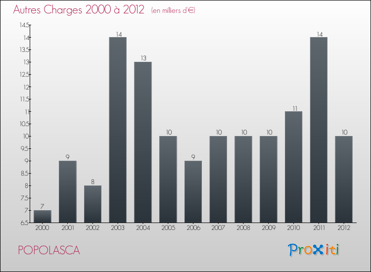 En 2012, les charges de fonctionnement de la commune de Popolasca étaient de : 59 000 € décomposées comme suit :