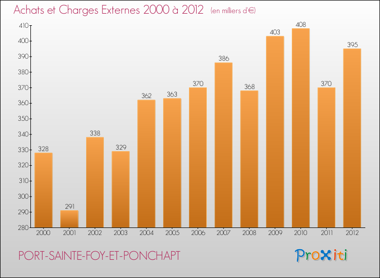 En 2012, le budget de fonctionnement de la commune de Port-Sainte-Foy-et-Ponchapt se montait à : 1 903 000 € décomposé comme suit :