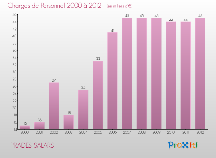 En 2012, les charges de fonctionnement de la commune de Prades-Salars étaient de : 217 000 € décomposées comme suit :