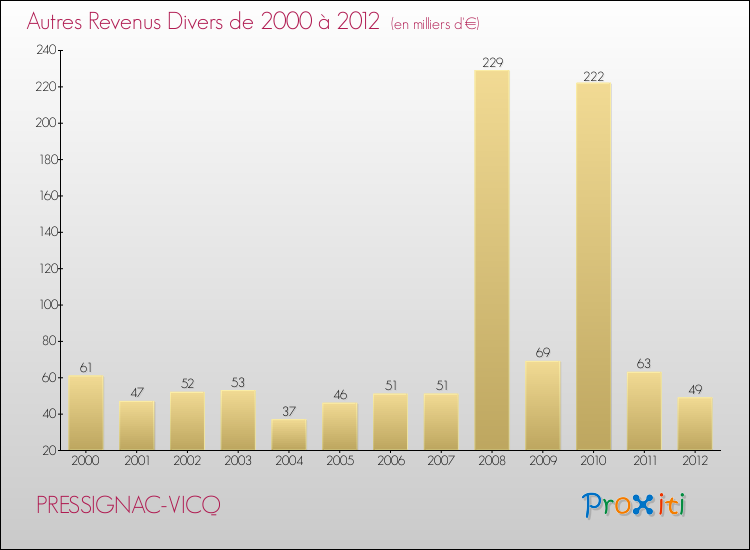 En 2012, le budget de fonctionnement de la commune de Pressignac-Vicq se montait à : 308 000 € décomposé comme suit :