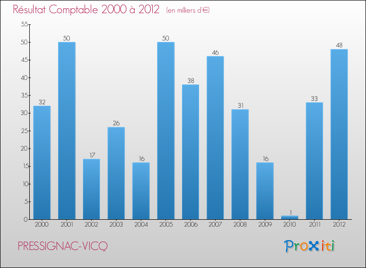 Le résultat comptable de la commune de Pressignac-Vicq s'établissait ainsi à : + 48 000 € fin 2012.
