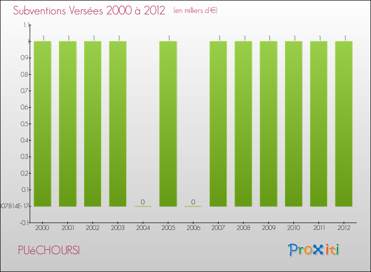 Evolution du résultat comptable pour PUéCHOURSI de 2000 à 2012