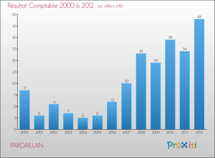 Le résultat comptable de la commune de Pardaillan s'établissait ainsi à : + 48 000 € fin 2012.