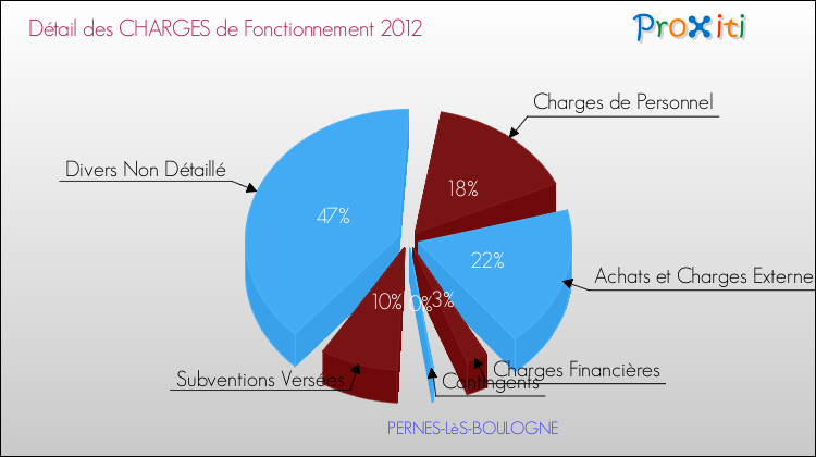 En 2012, les charges de fonctionnement de la commune de Pernes-lès-Boulogne étaient de : 467 000 € décomposées comme suit :