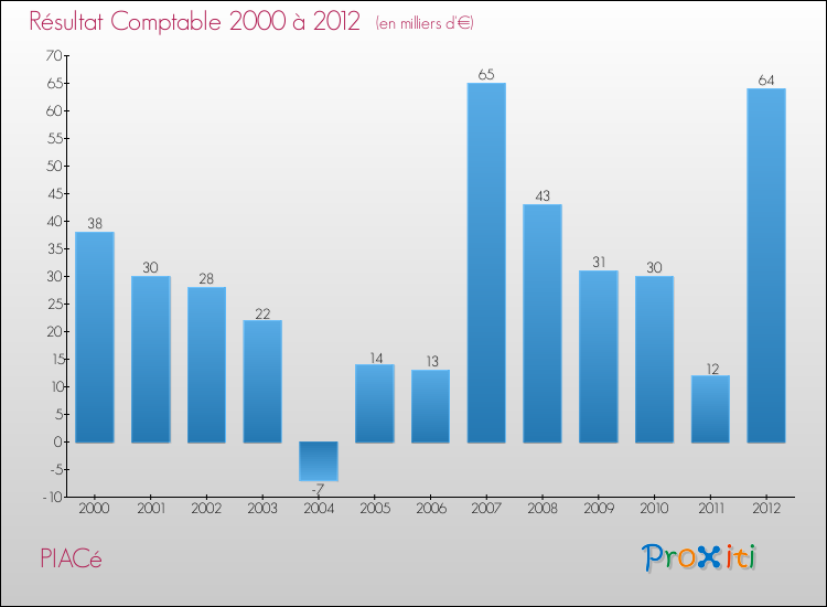 Le résultat comptable de la commune de Piacé s'établissait ainsi à : + 64 000 € fin 2012.