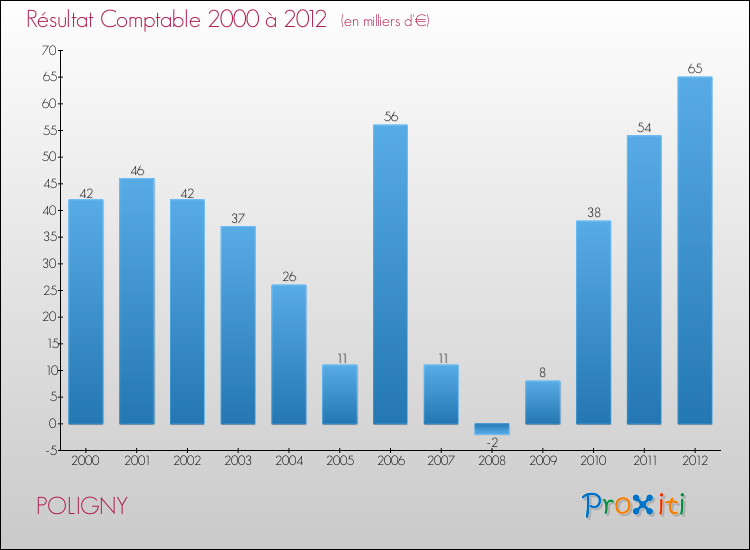 Le résultat comptable de la commune de Poligny s'établissait ainsi à : + 65 000 € fin 2012.