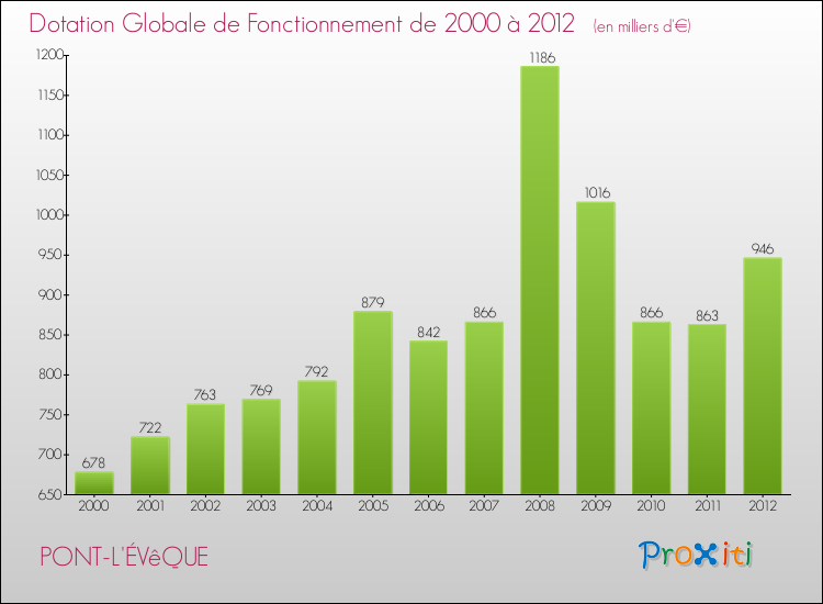 Le résultat comptable de la commune de Pont-l'Évêque s'établissait ainsi à : + 608 000 € fin 2012.