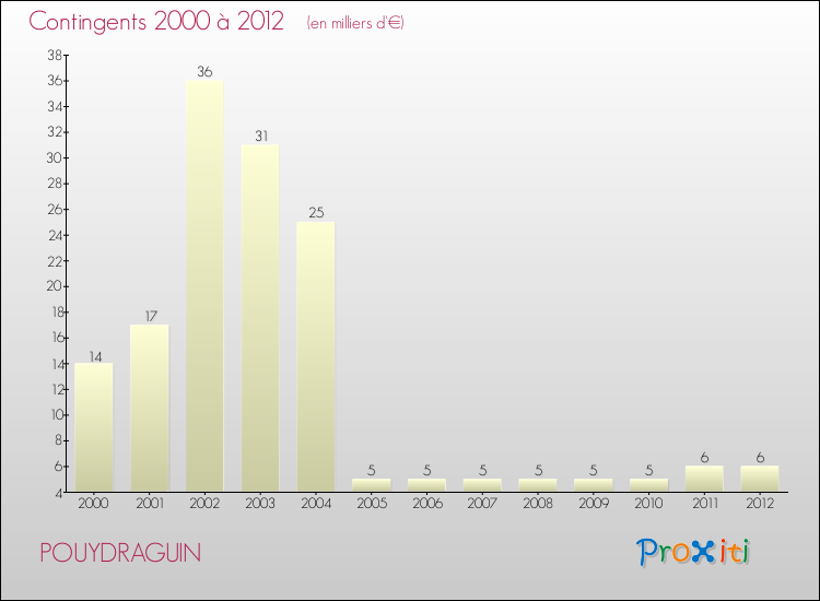En 2012, les charges de fonctionnement de la commune de Pouydraguin étaient de : 59 000 € décomposées comme suit :