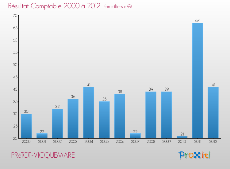 Le résultat comptable de la commune de Prétot-Vicquemare s'établissait ainsi à : + 41 000 € fin 2012.