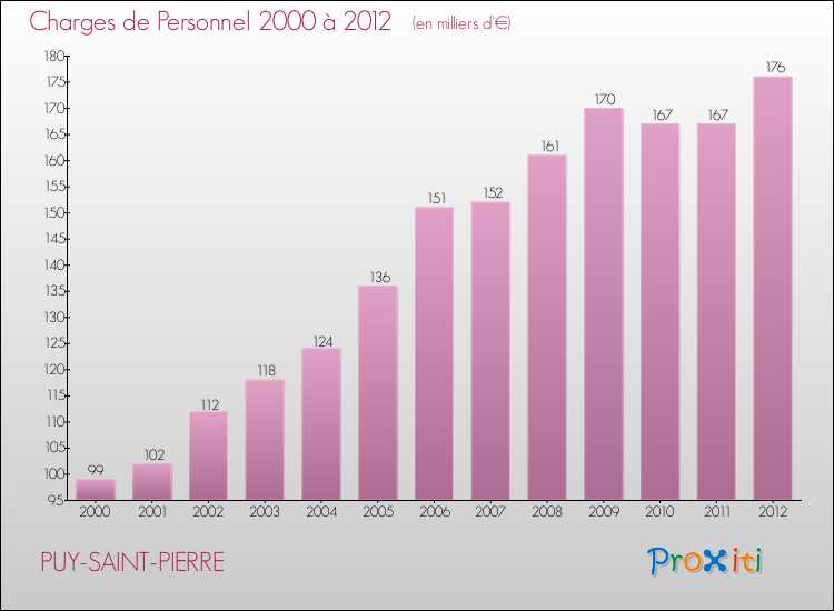 En 2012, les charges de fonctionnement de la commune de Puy-Saint-Pierre étaient de : 800 000 € décomposées comme suit :