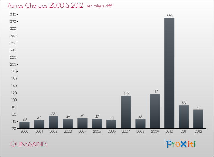 En 2012, les charges de fonctionnement de la commune de Quinssaines étaient de : 576 000 € décomposées comme suit :