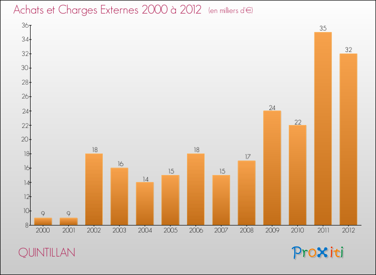 En 2012, les charges de fonctionnement de la commune de Quintillan étaient de : 89 000 € décomposées comme suit :