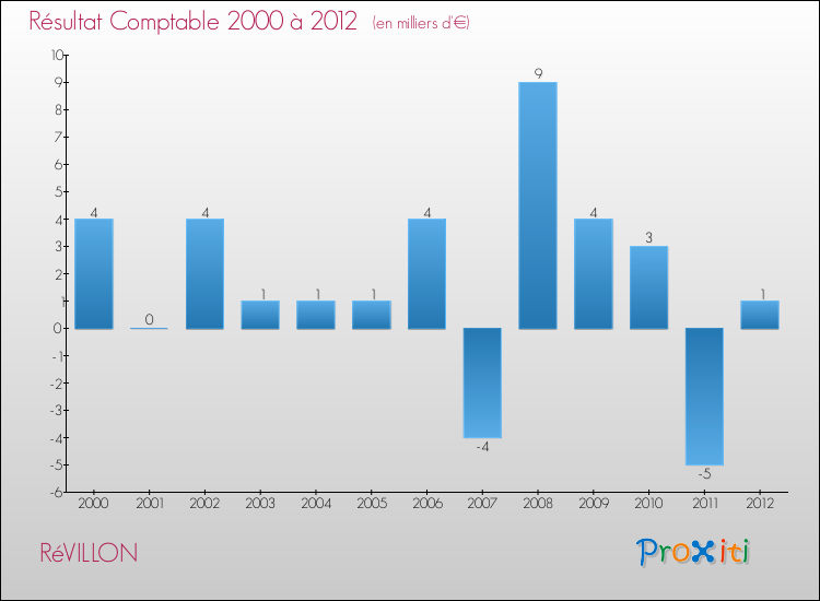 Le résultat comptable de la commune de Révillon s'établissait ainsi à : + 1 000 € fin 2012.