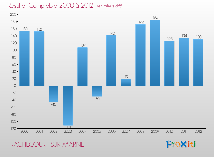 Le résultat comptable de la commune de Rachecourt-sur-Marne s'établissait ainsi à : + 130 000 € fin 2012.