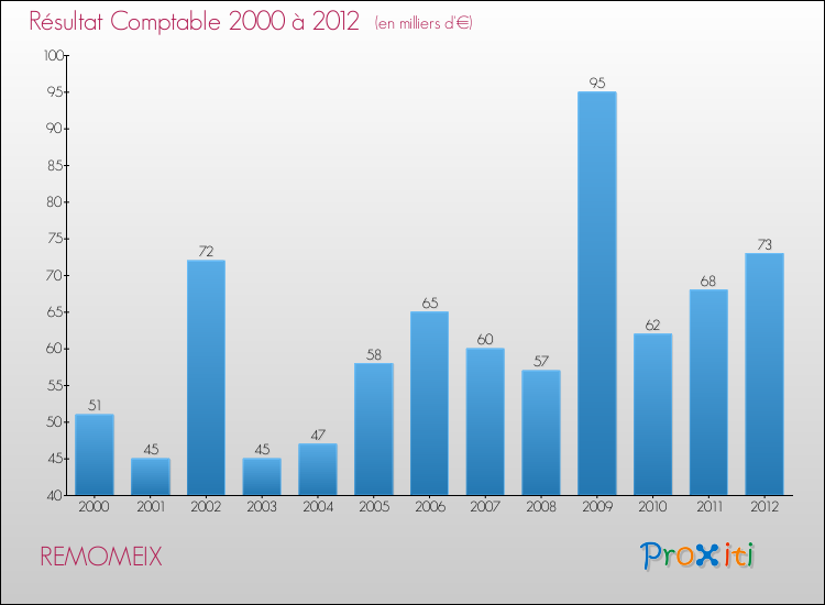 Le résultat comptable de la commune de Remomeix s'établissait ainsi à : + 73 000 € fin 2012.