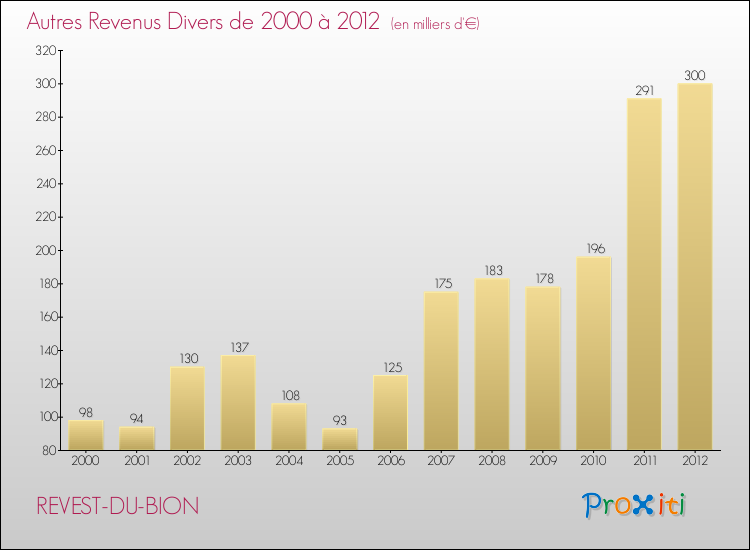 En 2012, le budget de fonctionnement de la commune de Revest-du-Bion se montait à : 691 000 € décomposé comme suit :