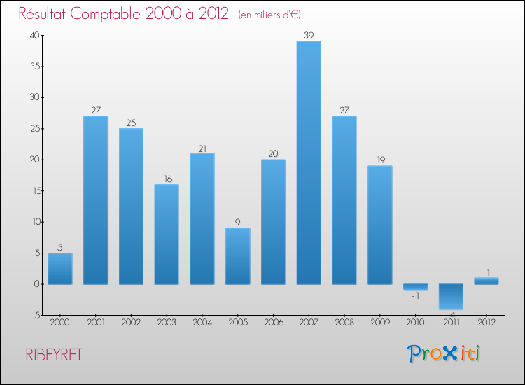 Le résultat comptable de la commune de Ribeyret s'établissait ainsi à : + 1 000 € fin 2012.