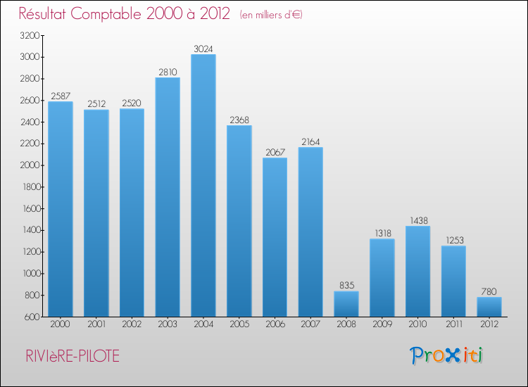 Le résultat comptable de la commune de Rivière-Pilote s'établissait ainsi à : + 780 000 € fin 2012.
