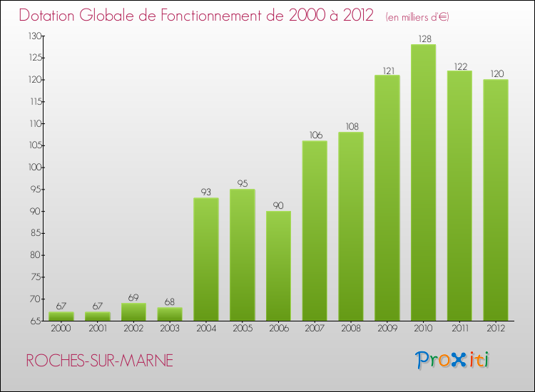 Le résultat comptable de la commune de Roches-sur-Marne s'établissait ainsi à : -31 000 € fin 2012 (recettes-dépenses).
