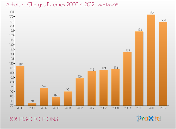 En 2012, les charges de fonctionnement de la commune de Rosiers-d'Égletons étaient de : 797 000 € décomposées comme suit :