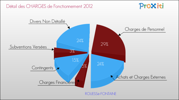 En 2012, les charges de fonctionnement de la commune de Rouessé-Fontaine étaient de : 123 000 € décomposées comme suit :
