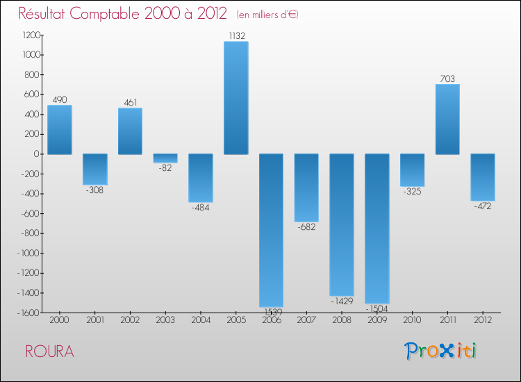 Le résultat comptable de la commune de Roura s'établissait ainsi à : -472 000 € fin 2012 (recettes-dépenses).
