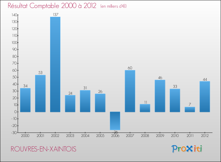 Le résultat comptable de la commune de Rouvres-en-Xaintois s'établissait ainsi à : + 44 000 € fin 2012.