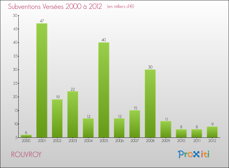 En 2012, le budget de fonctionnement de la commune de Rouvroy se montait à : 347 000 € décomposé comme suit :