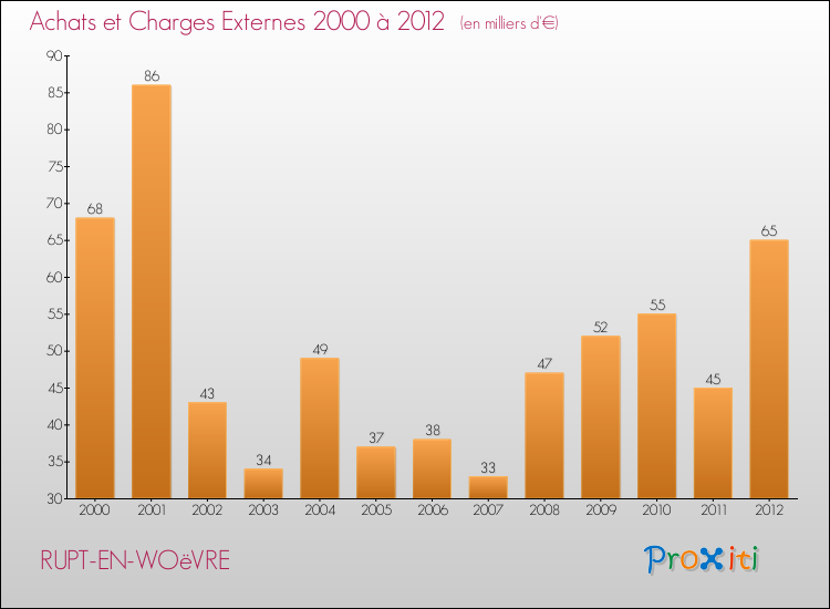 En 2012, les charges de fonctionnement de la commune de Rupt-en-Woëvre étaient de : 128 000 € décomposées comme suit :