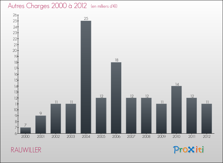 En 2012, les charges de fonctionnement de la commune de Rauwiller étaient de : 141 000 € décomposées comme suit :