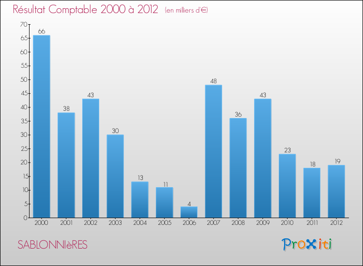 Evolution du résultat comptable pour SABLONNIèRES de 2000 à 2012