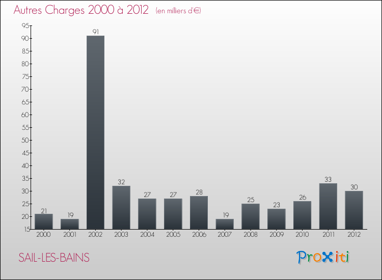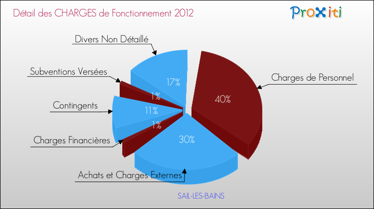 En 2012, les charges de fonctionnement de la commune de Sail-les-Bains étaient de : 176 000 € décomposées comme suit :