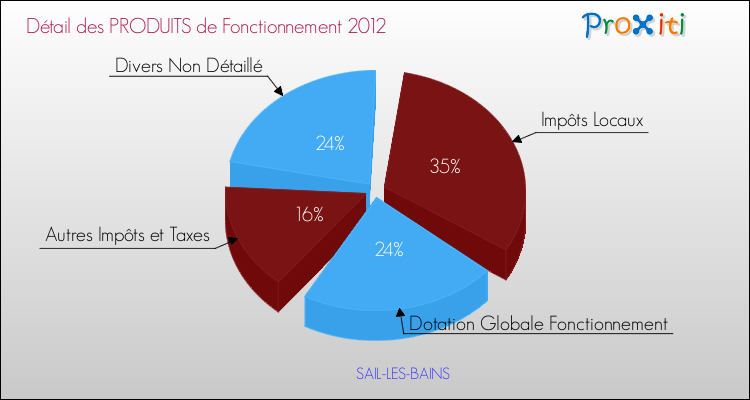 En 2012, le budget de fonctionnement de la commune de Sail-les-Bains se montait à : 201 000 € décomposé comme suit :