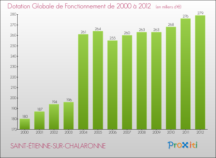 Le résultat comptable de la commune de Saint-Étienne-sur-Chalaronne s'établissait ainsi à : + 194 000 € fin 2012.