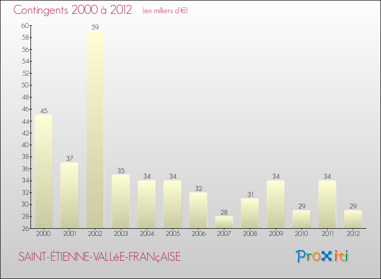En 2012, le budget de fonctionnement de la commune de Saint-Étienne-Vallée-Française se montait à : 576 000 € décomposé comme suit :