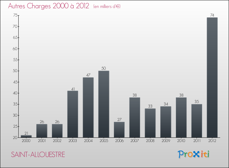 En 2012, les charges de fonctionnement de la commune de Saint-Allouestre étaient de : 504 000 € décomposées comme suit :